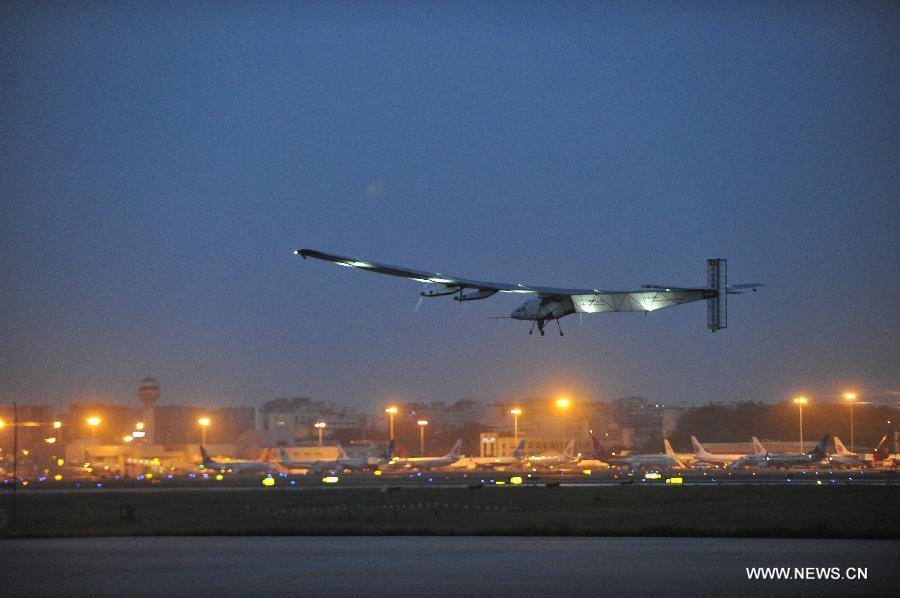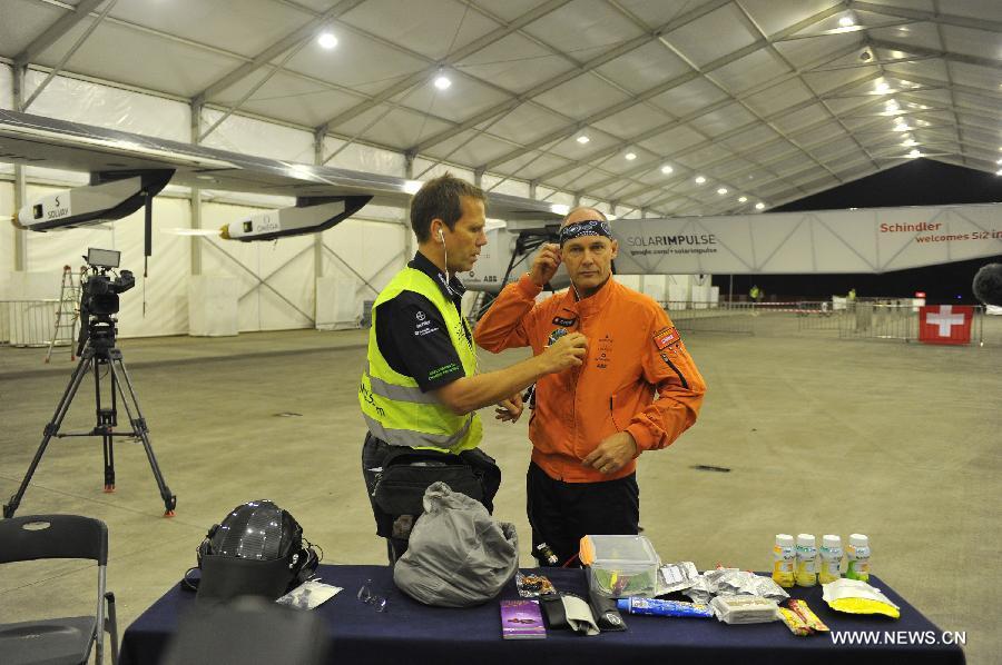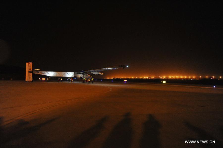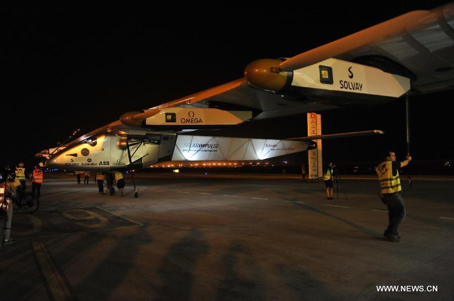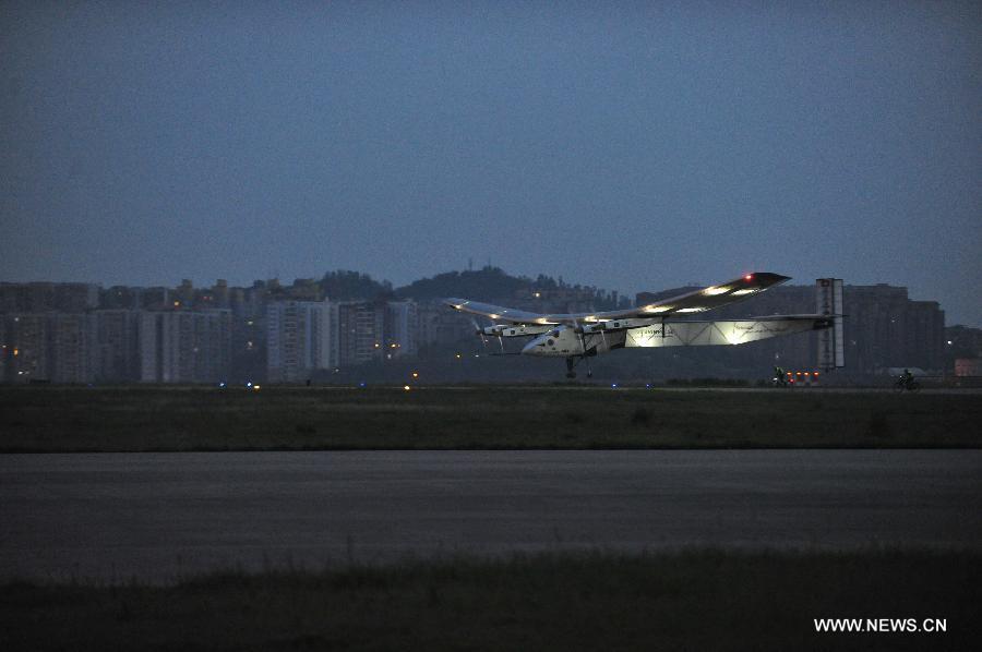 Solar Impulse 2 takes off from Jiangbei International Airport in Chongqing Municipality, southwest China, April 21, 2015. Solar Impulse 2, the world's largest solar-powered plane, left Chongqing Tuesday morning and headed for Nanjing, capital of east China's Jiangsu Province. (Photo: Xinhua/Tang Yi)