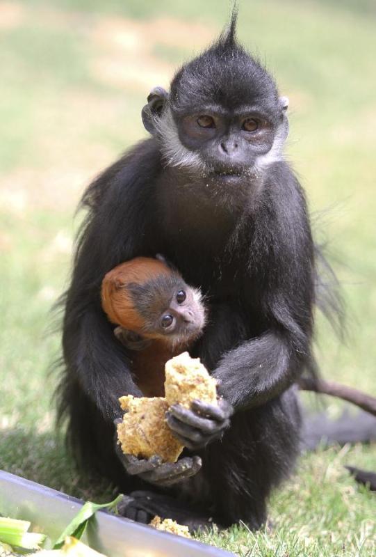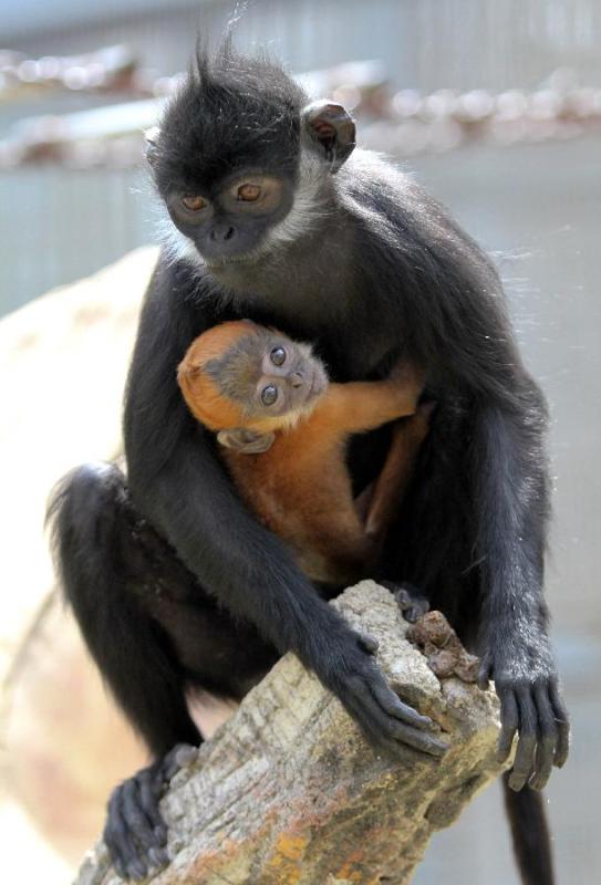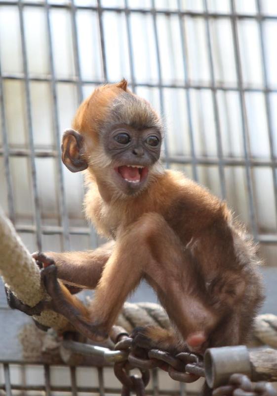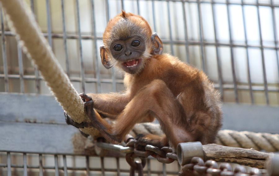 A francois' langur cub is seen at the Yantai Zoo in Yantai, east China's Shandong Province, April 23, 2015. (Photo: Xinhua/Chu Yang)