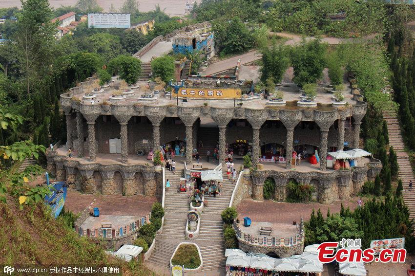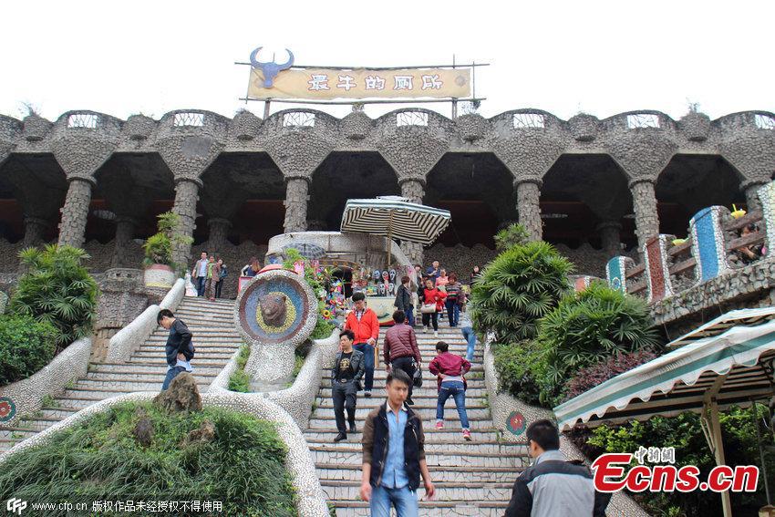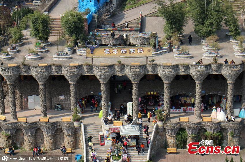 A view of castle-like toilet at the Foreigner Street theme park in Southwest China’s Chongqing municipality, April 28, 2015. The toilet structure, which is built on a hillside and can accommodate 2,000 people, is called “the coolest toilet”. (Photo/CFP)