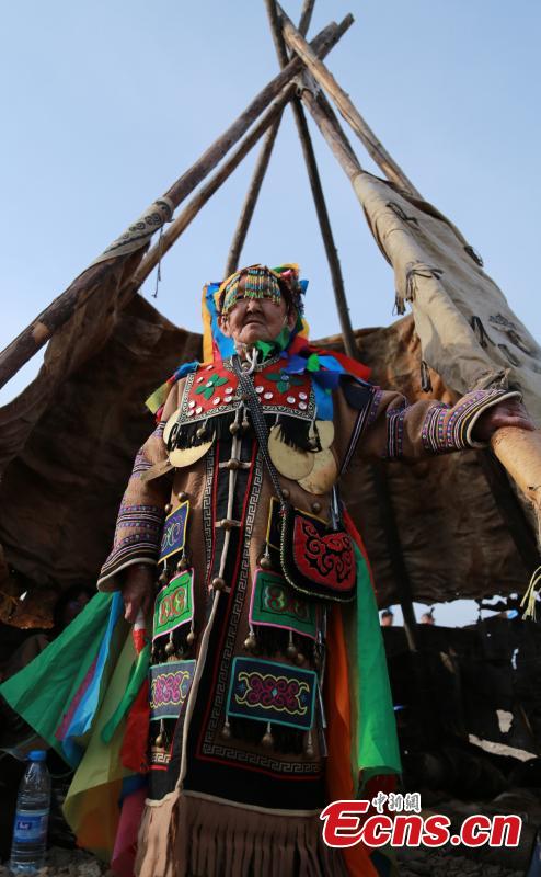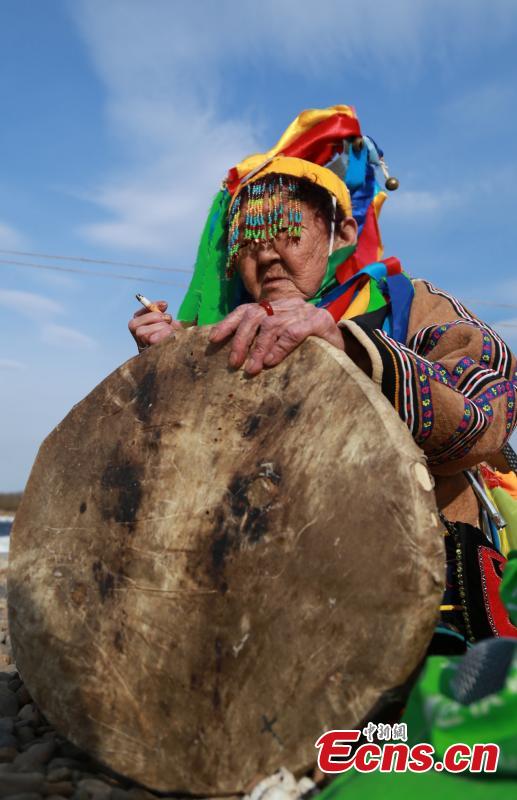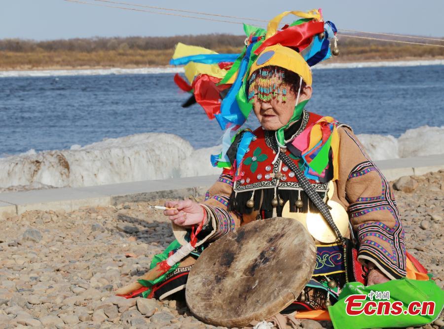 A ceremony led by the last shaman of the Ewenki ethnic group, Guan Kouni, is held at the Huma section of the Heilong River in Northeast China’s Heilongjiang province, April 28, 2015. The ceremony, an important part of the group’s culture, offers sacrifices to the god of the river and also marks the reopening of the river. (Photo: China News Service/Wei Lai)