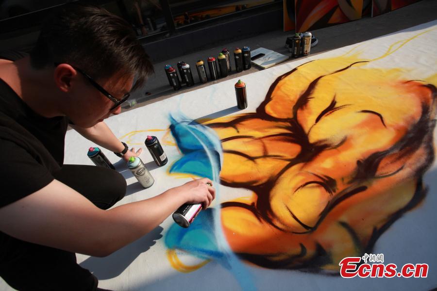 Young graffitist promotes Chinese culture in Taiyuan(1/8)