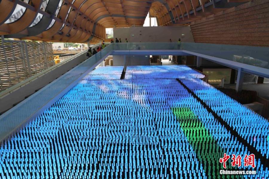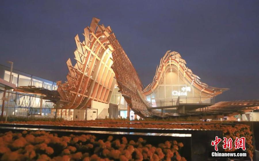 The photo shows the night view of the China Pavilion at the Expo Milano 2015. The China Pavilion is a self-built pavilion with a wave-like, timber-framed roof. The Pavilion, integrating with both aesthetic design and high technology, illustrates and explains in detail China's philosophies on agriculture, food, eating and nature. The Expo Milano 2015, with a theme on food and nutrition, kicks off in Milan, Italy on May 1, 2015 and remain open for six months. 145 nations are participating in the event and more than 50 of them have built their own pavilions. (Photo/Chen Jian)