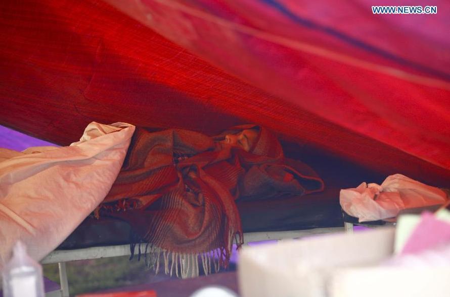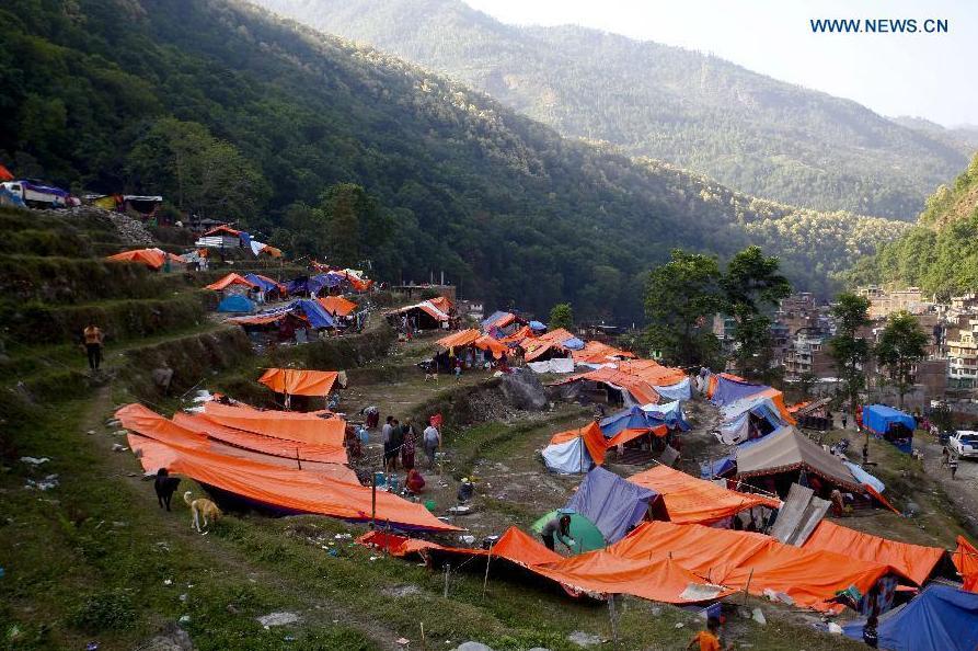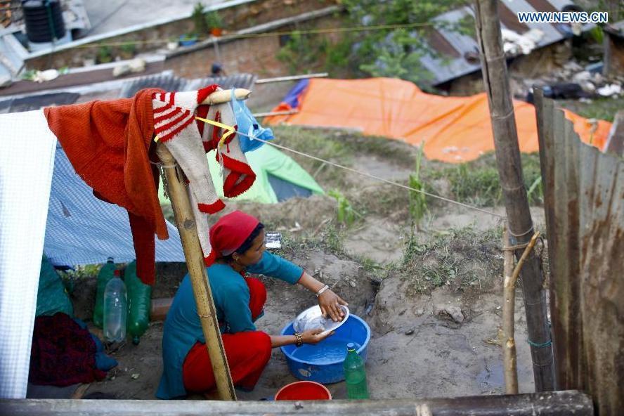 A woman walks to her tent in Sindhupalchowk, Nepal, May 2, 2015. At least 7,040 persons were confirmed dead with the number of injured exceeding 14,000 in the last Saturday's devastating quake in Nepal, according to the country's Ministry of Home Affairs Saturday. (Photo: Xinhua/Pratap Thapa)