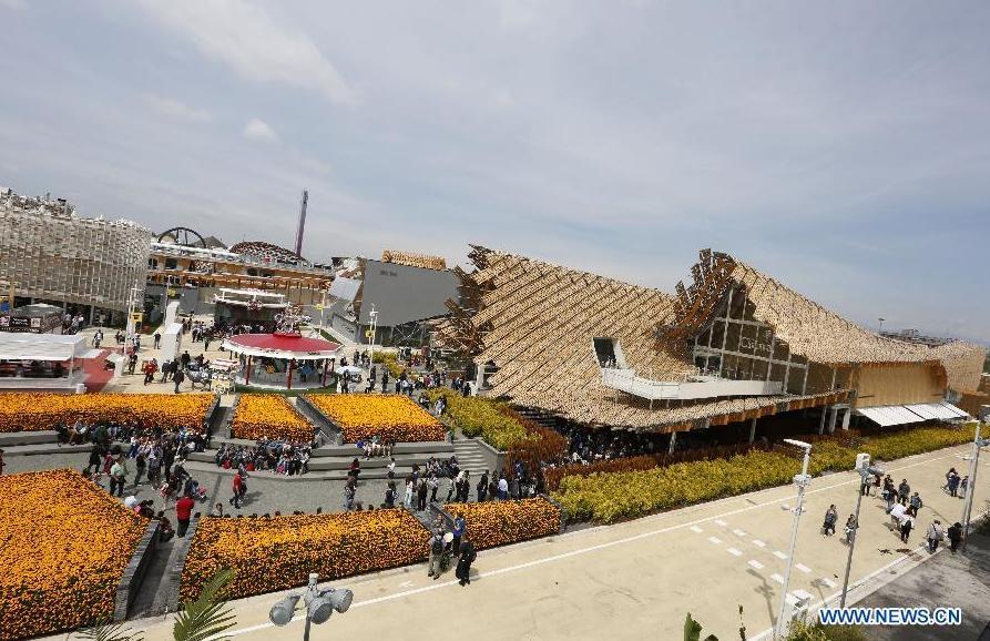 Photo taken on May 1, 2015 shows the China Pavilion at the Milan Expo 2015 in Milan, Italy. The Milan Expo will run until October 31 and is expected to attract over 20 million visitors. (Photo: Xinhua/Ye Pingfan)