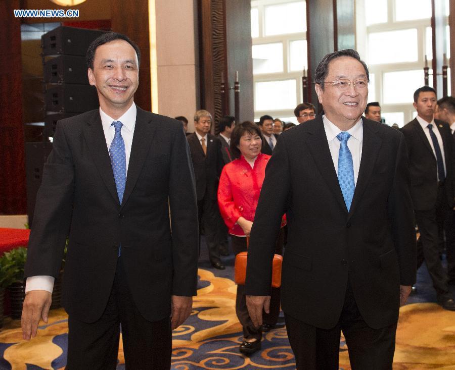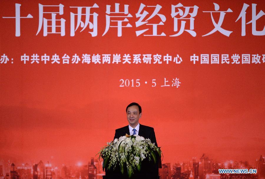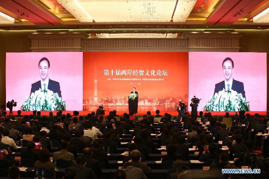 Photo taken on May 3, 2015 shows the opening ceremony of the 10th Cross-Strait Economic, Trade and Culture Forum in Shanghai, east China. The 10th Cross-Strait Economic, Trade and Culture Forum, a regular forum between the Chinese mainland and Taiwan, opened in Shanghai on Sunday. (Photo: Xinhua/Liu Ying)