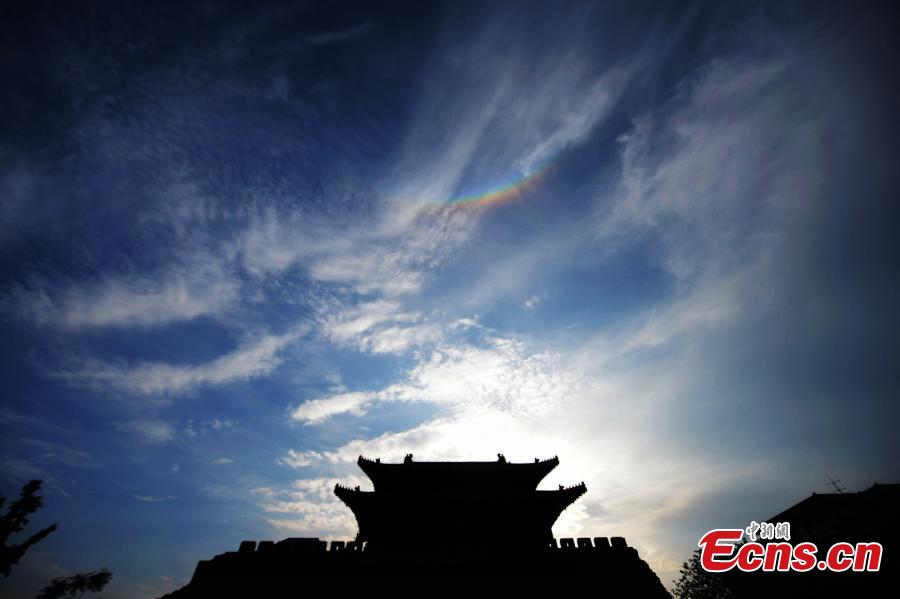 A rainbow is seen in the cloudy sky in Yangzhou city, East China’s Jiangsu province, May 5, 2015. With a history of 2,500 years, the city is one of the first 24 Historical and Cultural Cities recognized by the State Council, China’s cabinet. (Photo: China News Service/Meng Delong)