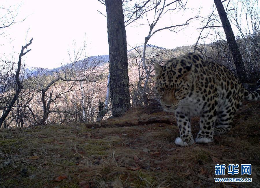 An image of a rare Amur leopard captured by infrared cameras in northeast China's Heilongjiang Province, released yesterday by local forestry authorities. Experts with the provincial forestry department said the infrared cameras set in a forest in Dongning County have captured images of the same leopard eight times. Its presence in the county suggests that the range of the species may be extending inland from the border areas between China and Russia, experts said. (Photo/Xinhua)