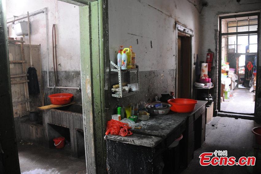 A building that was originally a base of a germ warfare unit of the Japanese forces during WWII has become apartments crowded with renters in Jinan city, capital of East China’s Shandong province, May 10, 2015. The three-storied building was declared a historical site under city protection in March 2007, but it has deteriorated both inside and outside. (Photo/CFP)