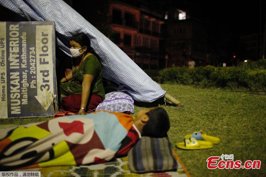 Residents sleep on a street after a 7.5-magnitude earthquake in Kathmandu, Nepal, May 12, 2015. A total of 37 people have been confirmed dead on Tuesday's powerful quake, the Home Ministry said in its latest update. (Photo/ Agencies)
