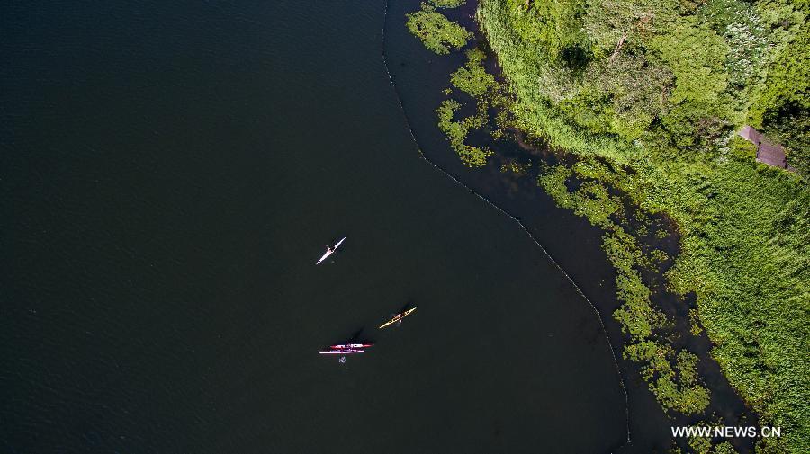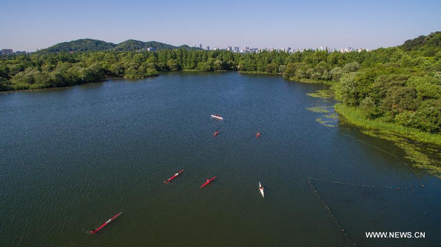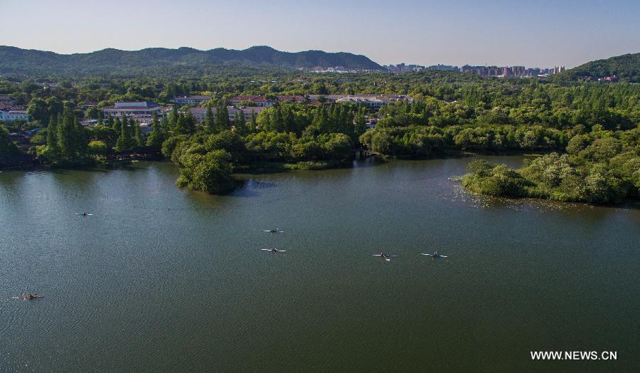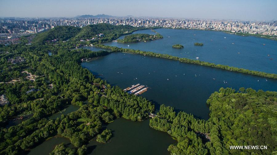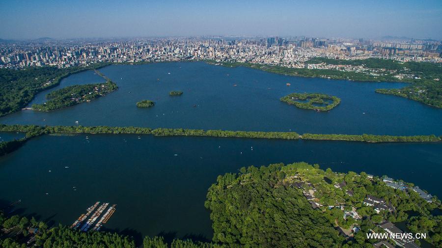 Photo taken on May 12, 2015 shows an aerial view of the West Lake in Hangzhou, capital city of east China's Zhejiang Province. (Photo: Xinhua/Xu Yu)