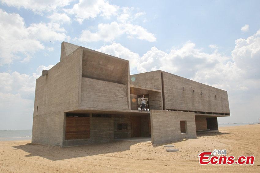 An isolated library lies hundreds of meters away from a popular beach resort usually packed with tourists in Nandaihe, North China’s Hebei province, May 12, 2015. The two-storied library, built for public use, is also a nice place to watch the waves and tides. (Photo/CFP)