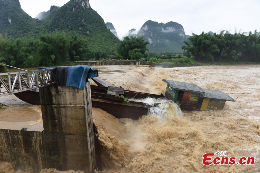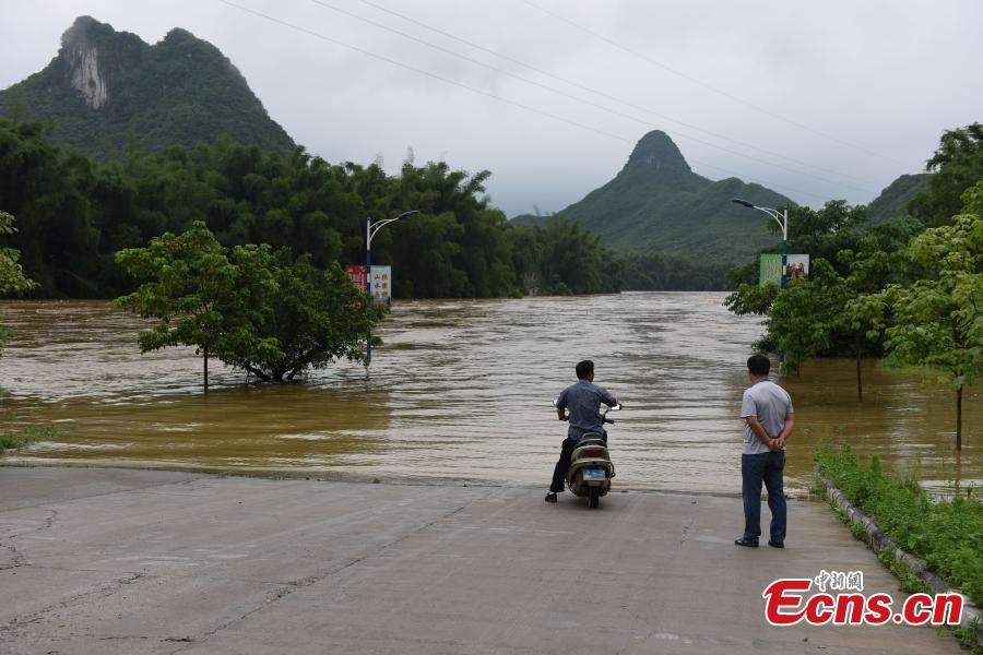 Floodwaters overflow from a dam after heavy rain in Luocheng Mulam autonomous county, Southwest China’s Guangxi Zhuang autonomous region, May 15, 2015. The rainfall amounted to 236 millimeters, local sources say. (Photo: China News Service/Wei Rudai)