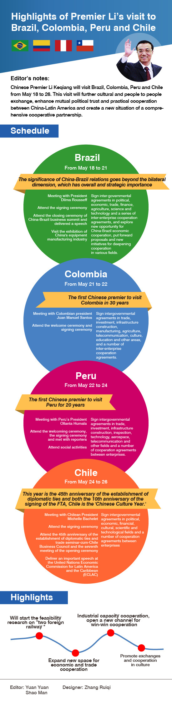 Highlights of Premier Li's visit to Brazil, Colombia, Peru and Chile