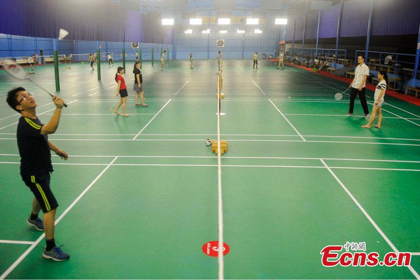 A leading hotel with a 20-year history has converted it’s health spa into a sports center with 27 badminton courts after the crackdown on prostitution in Dongguan city, South China’s Guangdong province, May 17, 2017. Following raids on spas and karaoke hostess bars in the city from 2014, including what police call the "protective umbrella" of the sex trade, the spa suffered a downturn in business. (Photo/CFP)