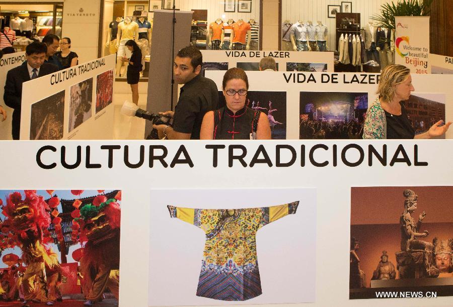 Photo taken on March 2, 2015 shows people visiting an exhibition promoting tourism in Beijing, capital of China, in Rio de Janeiro, Brazil. Chinese Premier Li Keqiang will visit Brazil, Colombia, Peru and Chile on May 18-26. (Photo: Xinhua/Xu Zijian)