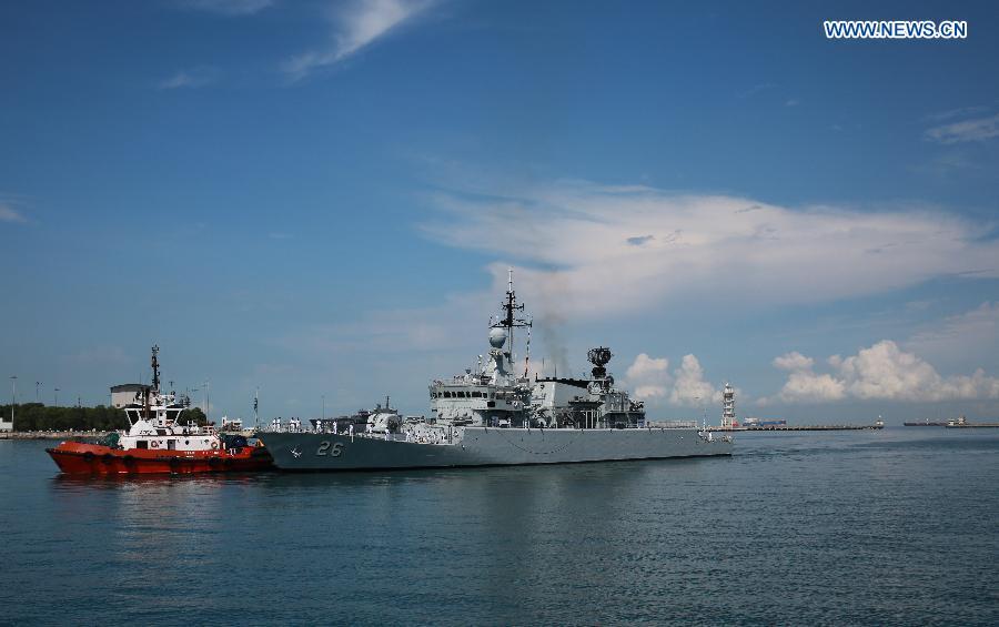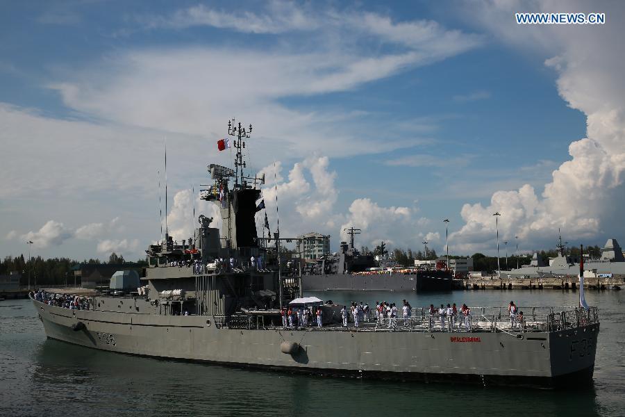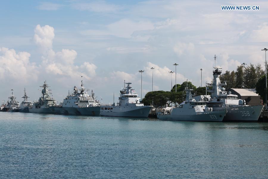 Warships dock at Changi Naval Base during the International Maritime Defense Exhibition Asia (IMDEX) preview in Singapore, May 18, 2015. IMDEX Asia 2015, a flagship maritime defense show in Singapore, will run from May 19 to 21 with a stellar line-up of 20 warships from 12 countries and participation of more than 180 exhibiting companies from 28 countries and regions showcasing innovations featured key trends and developments in the industry. The Chinese guided missile frigate Yulin will attend the 2015 International Maritime Defense Exhibition, as well as the multilateral maritime joint exercise of the Western Pacific Naval Symposium (WPNS). (Photo: Xinhua/Bao Xuelin)