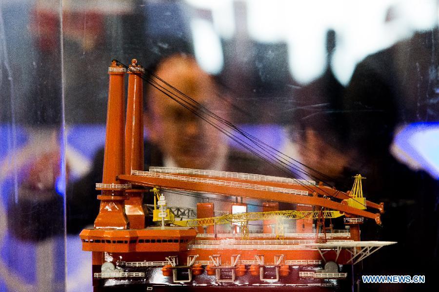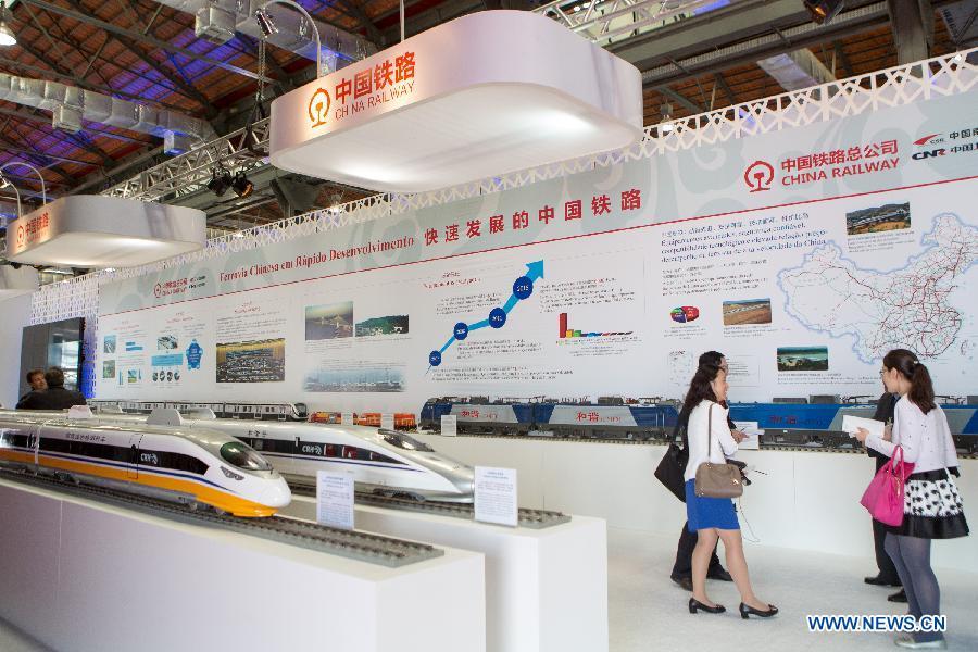 Visitors are seen at the exhibition stand of China Railway at the China Exposition of Equipment and Manufacturers in Rio de Janeiro, Brazil, May 20, 2015. Some 30 Chinese companies in different sectors such as energy, telecommunication, information technology, participated in the exhibition which kicked off here on Wednesday. (Photo: Xinhua/Xu Zijian)