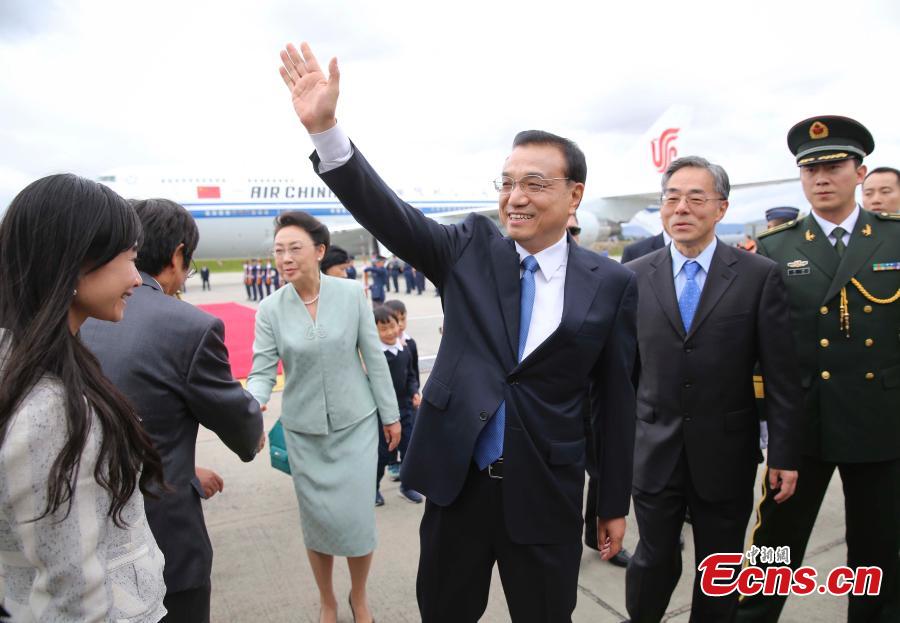 Chinese Premier Li Keqiang and his wife Cheng Hong arrive in Bogota on May 21, 2015 for an official visit to Colombia. (CNS photo/Liu Zhen)