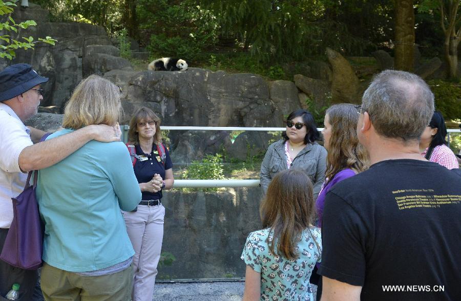 Photo taken on May 22, 2015 shows giant panda twins Mei Lun and Mei Huan at Zoo Atlanta, Georgia, United States. Born on July 15, 2013, Giant panda twins Mei Lun and Mei Huan at Zoo Atlanta are the first surviving pair of panda twins ever born in the United States. They are weaned and now occupy a separate habitat from their mother Lun Lun. (Xinhua/Wang Lei)
