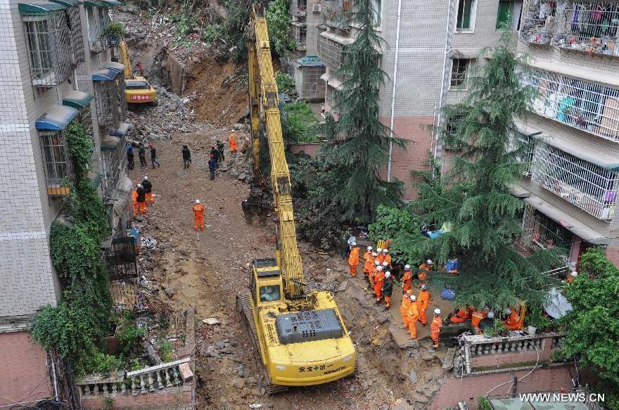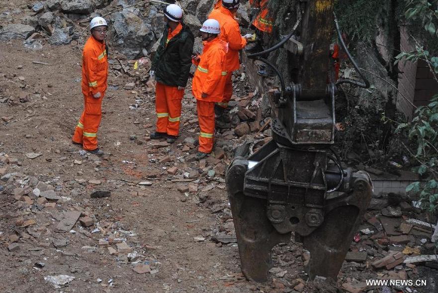 Rescuers work at the site where a building collapsed in Guiyang, southwest China's Guizhou Province, May 23, 2015. All 16 people trapped in the collapsed building in southwest China's Guizhou Province were found dead on Saturday afternoon, local authorities confirmed. (Photo: Xinhua/Ou Dongqu)