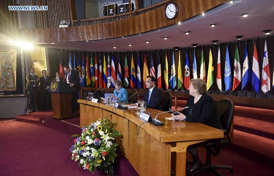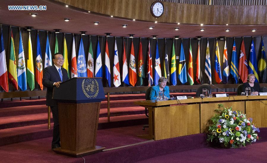 Chinese Premier Li Keqiang delivers a speech at the United Nations Economic Commission for Latin America and the Caribbean (ECLAC), in Santiago, Chile, May 25, 2015. (Xinhua/Zhang Duo)