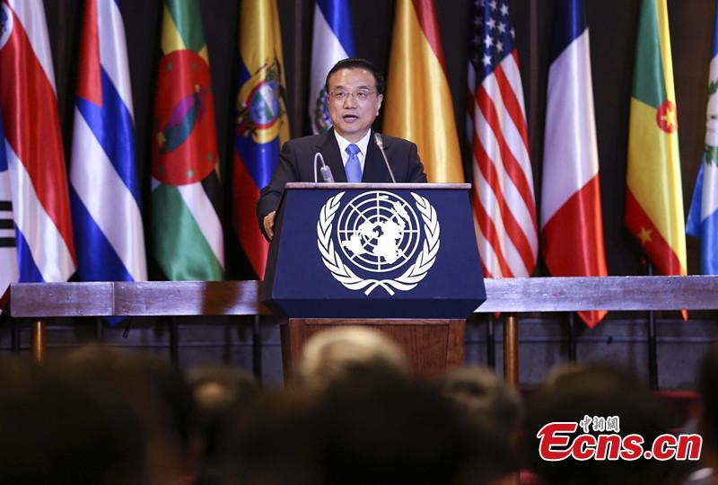 Chinese Premier Li Keqiang delivers a speech at the Economic Commission for Latin America and the Caribbean (ECLAC), in Santiago, Chile, May 25, 2015. (CNS photo/ Liuzhen)