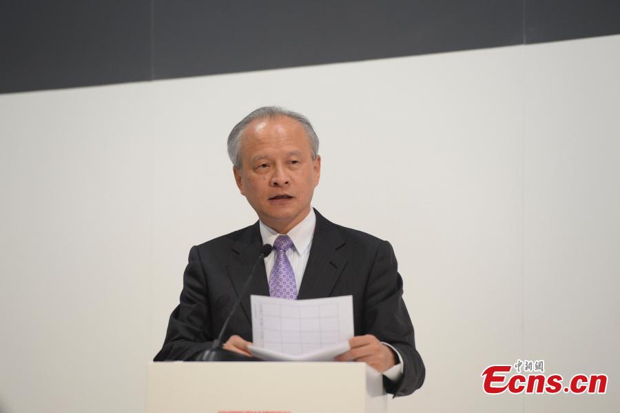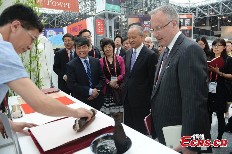 An opening ceremony to welcome China as guest of honor at the BEA Global Market Forum is held at Javits Center in New York City on May 27, 2015. Wu Shangzhi, the deputy director of the State General Administration of Press, Publication, Radio, Film and Television, and Cui Tiankai, China's ambassador to the United States, attended the ceremony and made speeches. China’s presence at BookExpo America (BEA) marks the largest scale China-U.S. publication industry exchange since China and the U.S. established diplomatic relationship in 1979. (Photo: China News Service/Liao Pan)