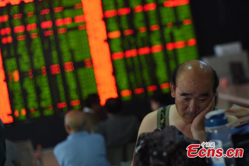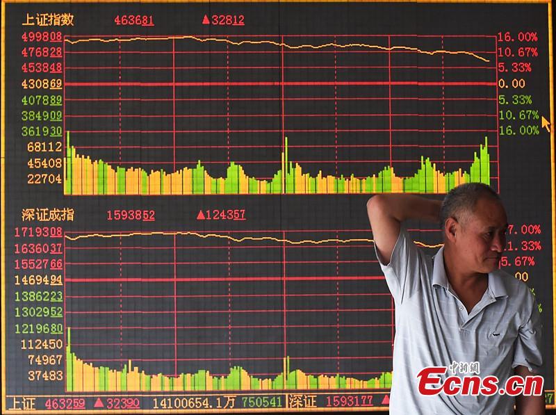Investor at a securities brokerage in Taiyuan, China's Shanxi province, May 28, 2015. Chinese shares plummeted on Thursday, with the benchmark Shanghai Composite Index diving 6.5 percent to finish at 4,620.27 points. (CNS photo/Weiliang)