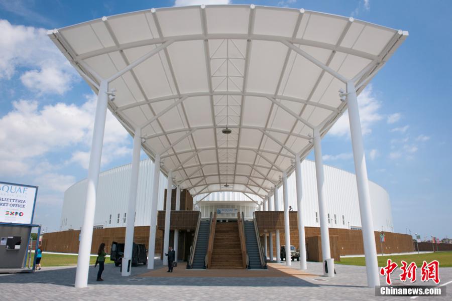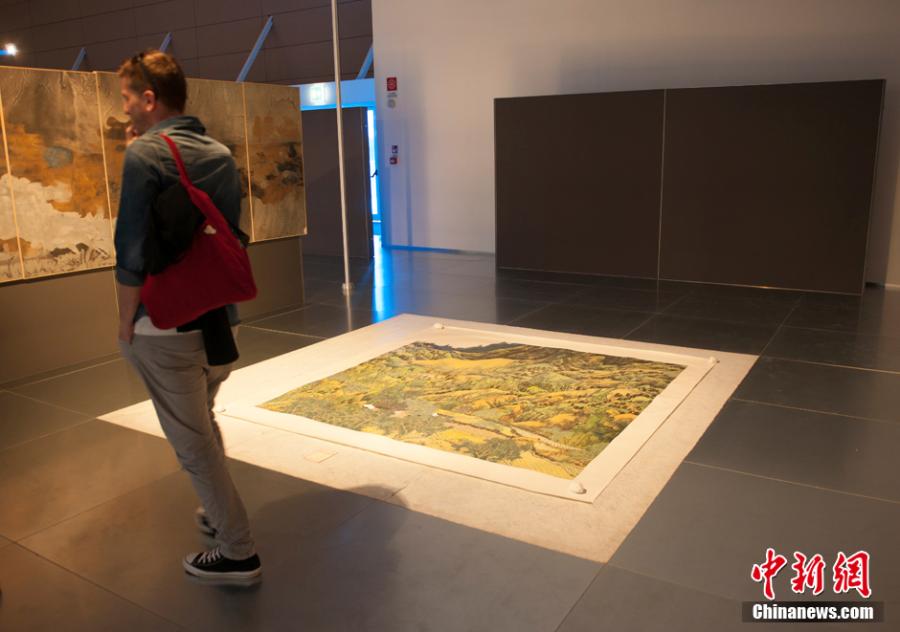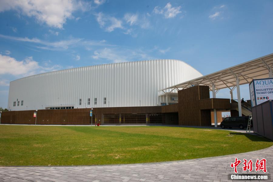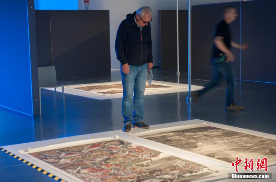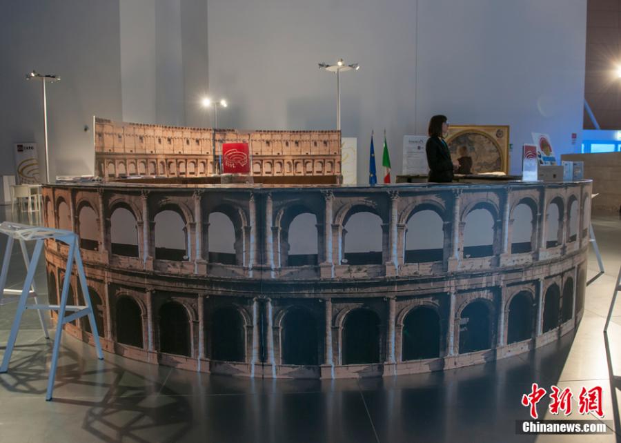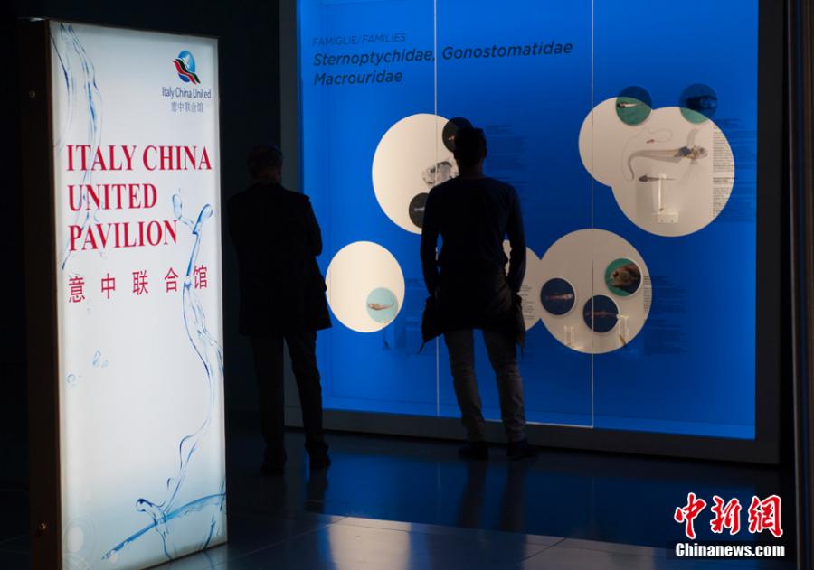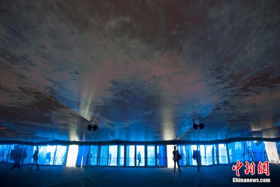 Scenes of flowing water are projected on the ceiling at Aquae Venice, an exhibition dedicated to water, during Milan Expo 2015 in Venice, Italy, May 28, 2015. (Photo: China News Service/Li Qing)
