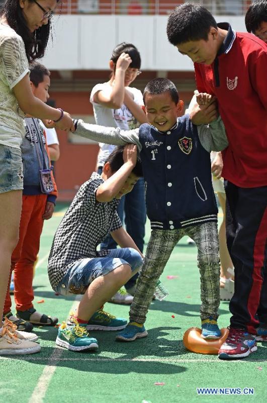 Children perform on a theater stage over the water at the sight spot "San Fang Qi Xiang", or "Three Lanes and Seven Alleys" in Fuzhou, capital of southeast China's Fujian Province, May 31, 2015. Children across China enjoy various kinds of activities to celebrate International Children's Day, which will fall on June 1. (Photo: Xinhua/Lin Shanchuan)