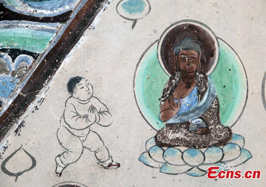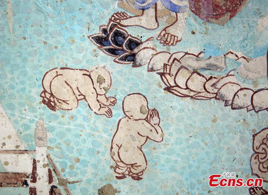 Dunhuang Research Academy has released a series of photos of grotto paintings that depict child’s life on WeChat, a popular social networking app, to mark International Children’s Day on June 1. The academy is an institution responsible for conservation, management and research at the Mogao Grottoes (a World Cultural Heritage site at Dunhuang), the Yulin Grottoes (a nationally protected key cultural heritage site at Guazhou), and the Western Thousand-Buddha Grottoes at Dunhuang. There are 183 caves with wall paintings of child, 37% of all caves in Dunnhuang, spanning a period of 1000 years. (Photo: China News Service/Fan Xuesong)