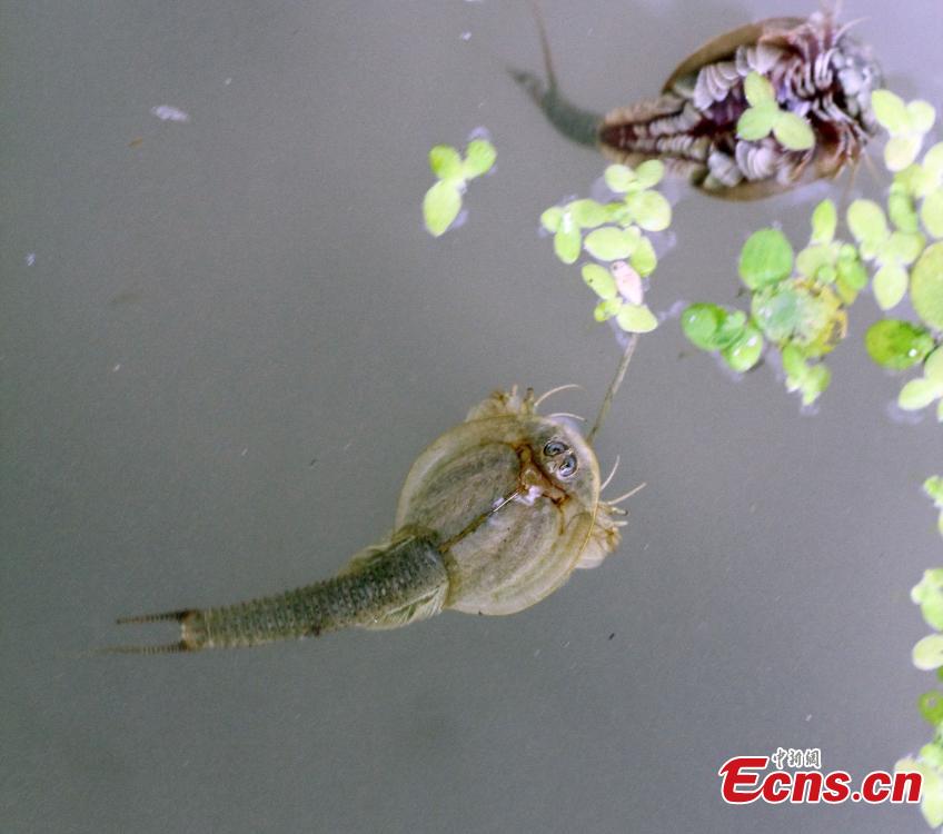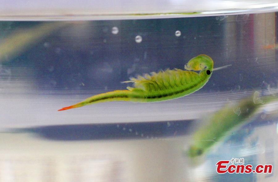 Fairy shrimps swim in a vessel at the Insect Museum of West China in Chengdu city, capital of Southwest China’s Sichuan province. Tadpole shrimps and fairy shrimps, which both have outlived dinosaurs, were found in a field by researchers of the museum. (Photo: China News Service/Zhong Xin)