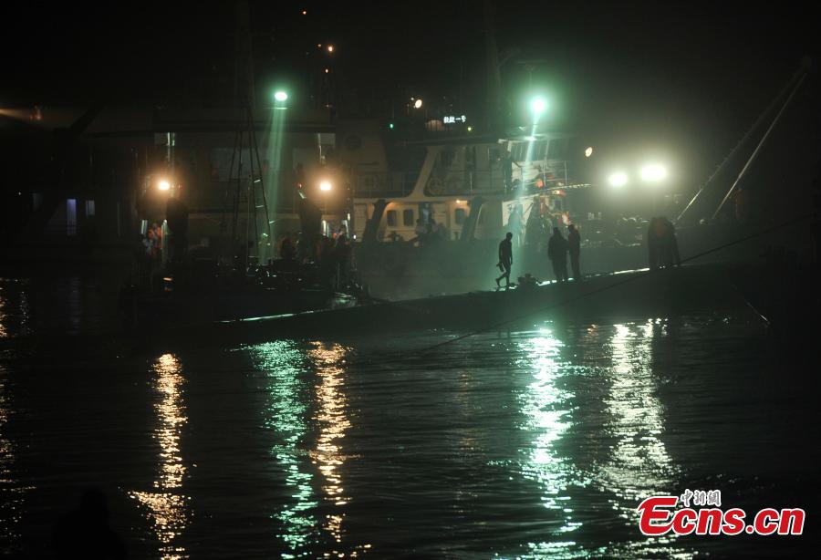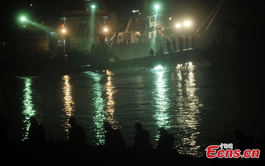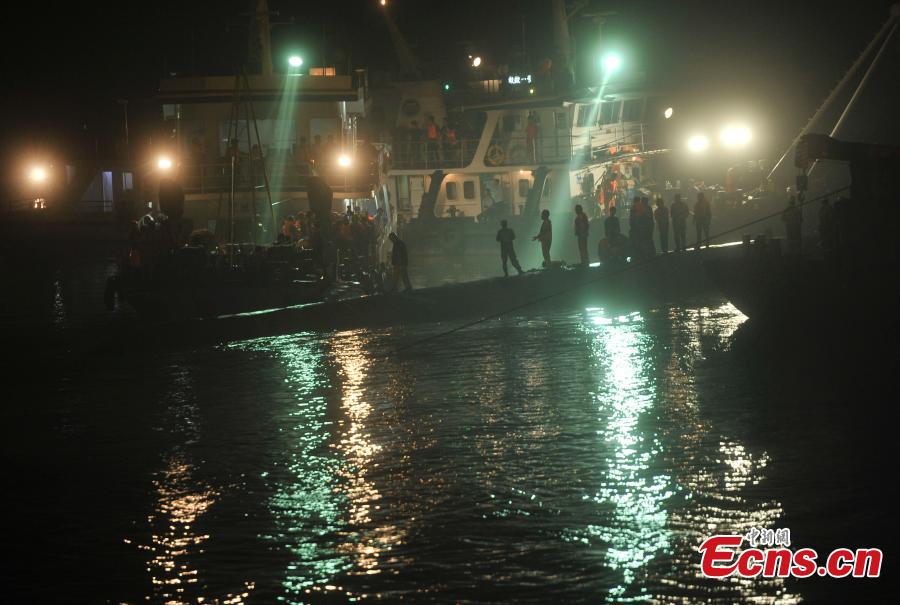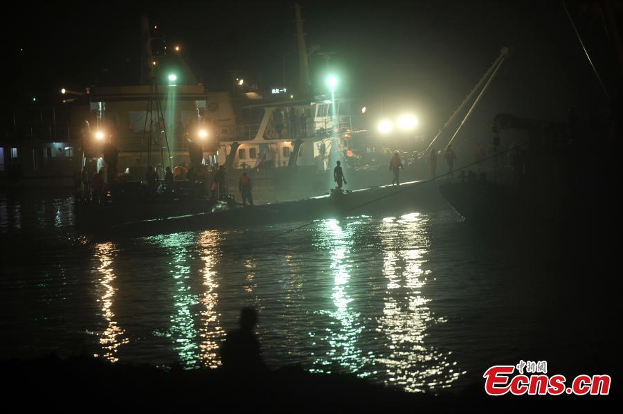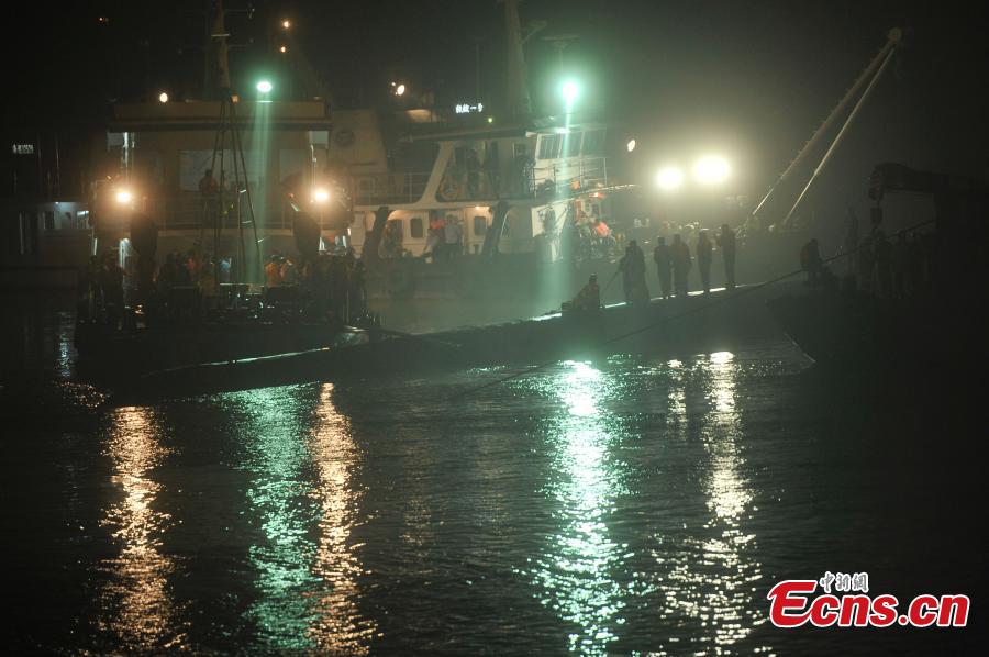 Rescuers continue to search in rain for the missing after a ship carrying 456 people sank on Monday night on the Yangtze River in Jianli city, Central China’s Hubei province, June 3, 2015. Seven have been confirmed dead, 14 found alive and 435 remain missing after the worst recorded ship disaster on the Yangtze River. (Photo: China News Service/Chen Chao)