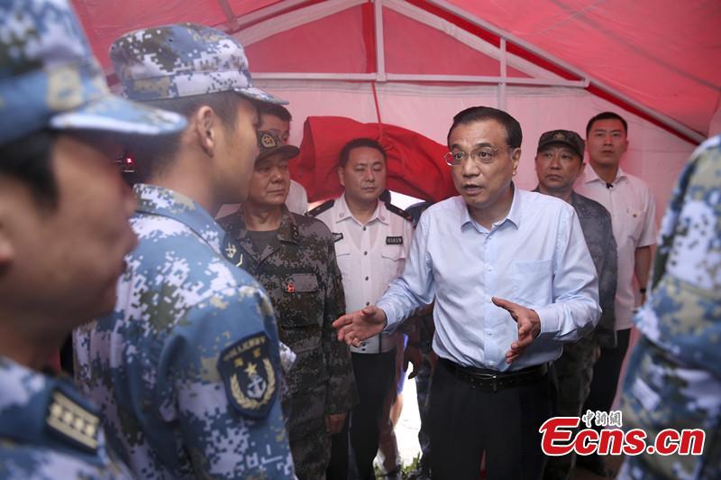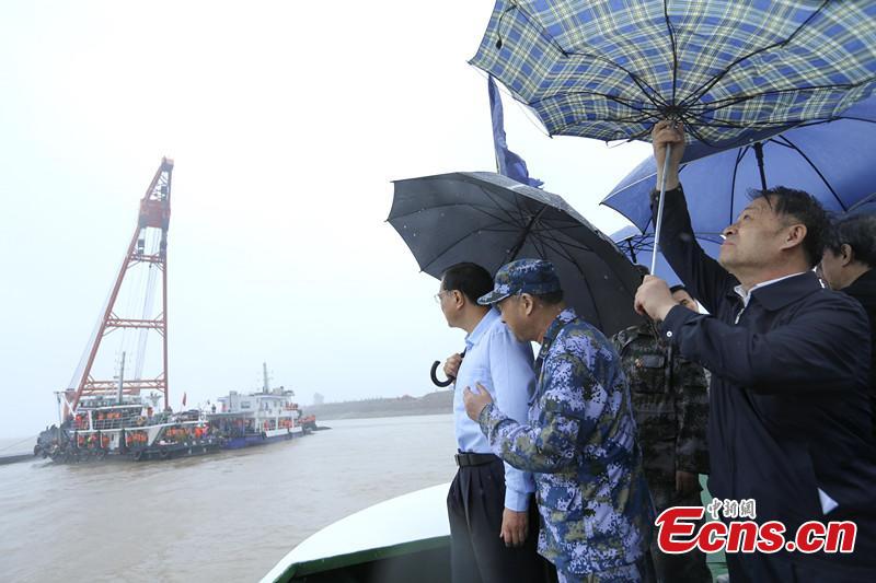 Chinese Premier Li Keqiang visits divers searching for survivors at the site of overturned ship in the Jianli section of the Yangtze River in central China's Hubei Province, June 3, 2015. Ship Dongfangzhixing, or Eastern Star, sank Monday night in the Yangtze River. Carrying 405 passengers, five travel agency workers and 47 crew members, the ship was heading from Nanjing, capital of east China's Jiangsu Province, for southwest China's Chongqing. (CNS photo/Liuzhen)