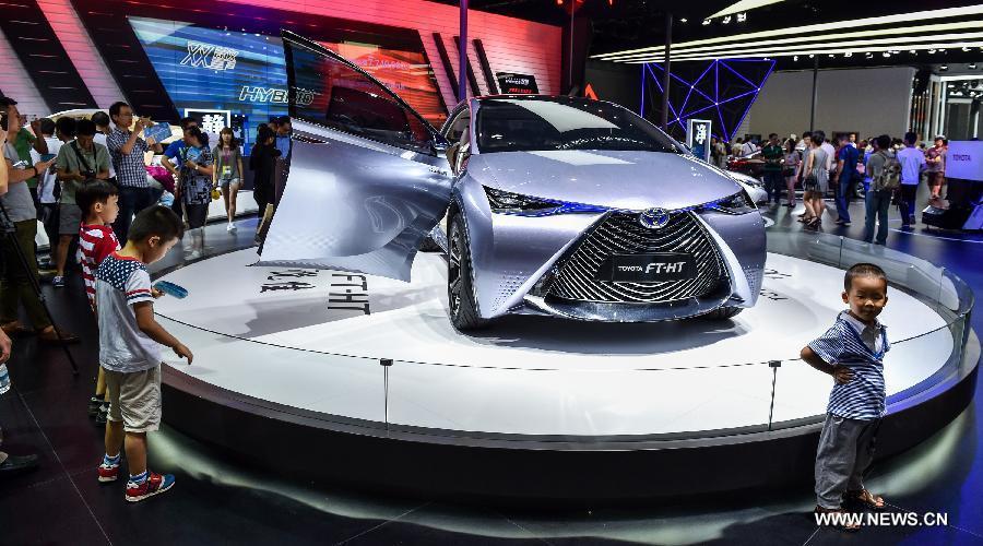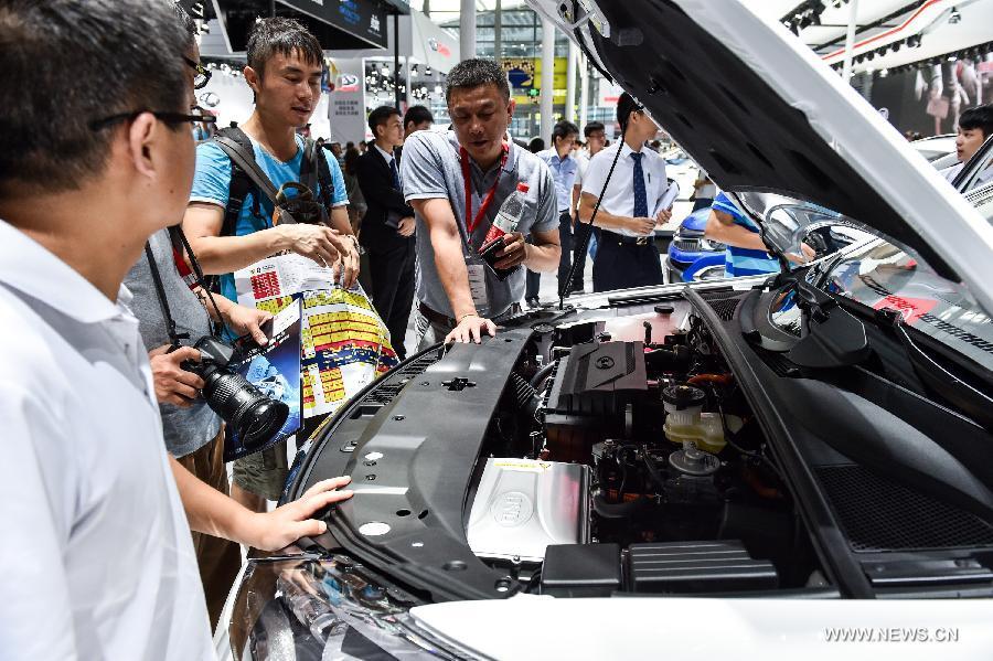 A visitor looks at a car during the 2015 Shenzhen-Hong Kong-Macao International Auto Show in Shenzhen, south China's Guangdong Province, June 6, 2015. More than 1,000 new vehicles were on display during the exhibition, which kicked off here Saturday. (Xinhua/Mao Siqian)