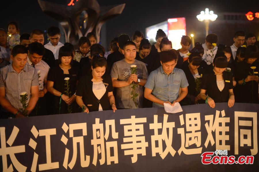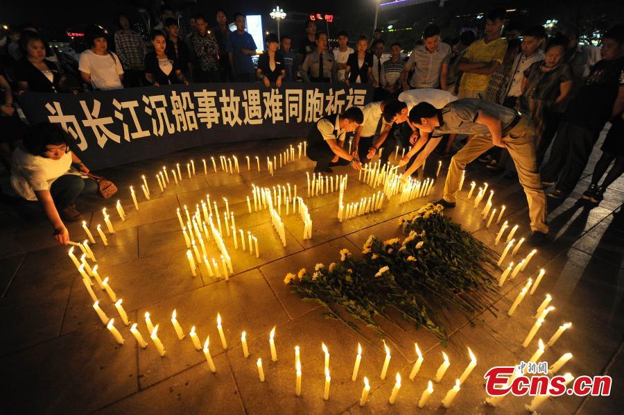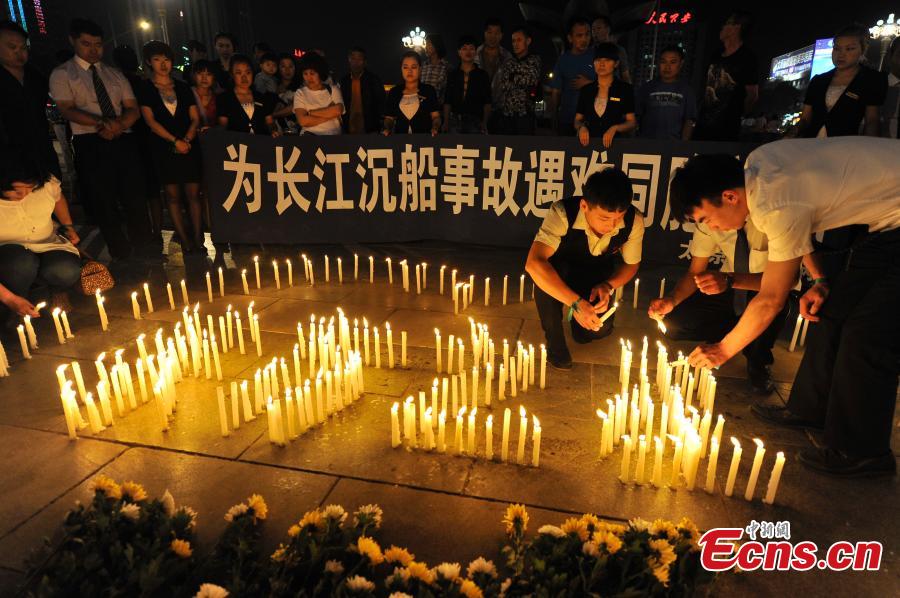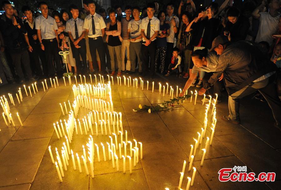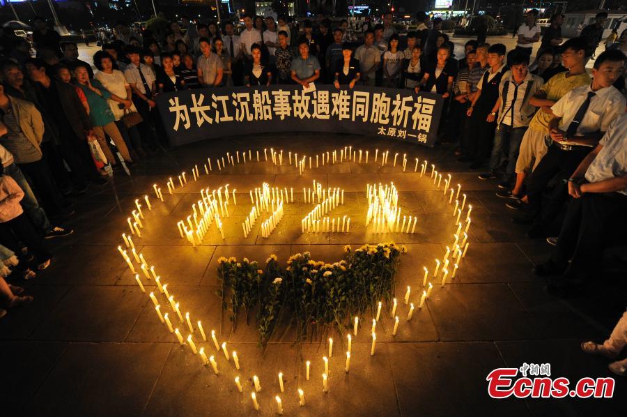 Residents hold a candlelight vigil on a square in Taiyuan, capital of North China’s Shanxi province to pray for victims of a capsized ship in the Yangtze River, June 7, 2015. (Photo: China News Service/Wei Liang)