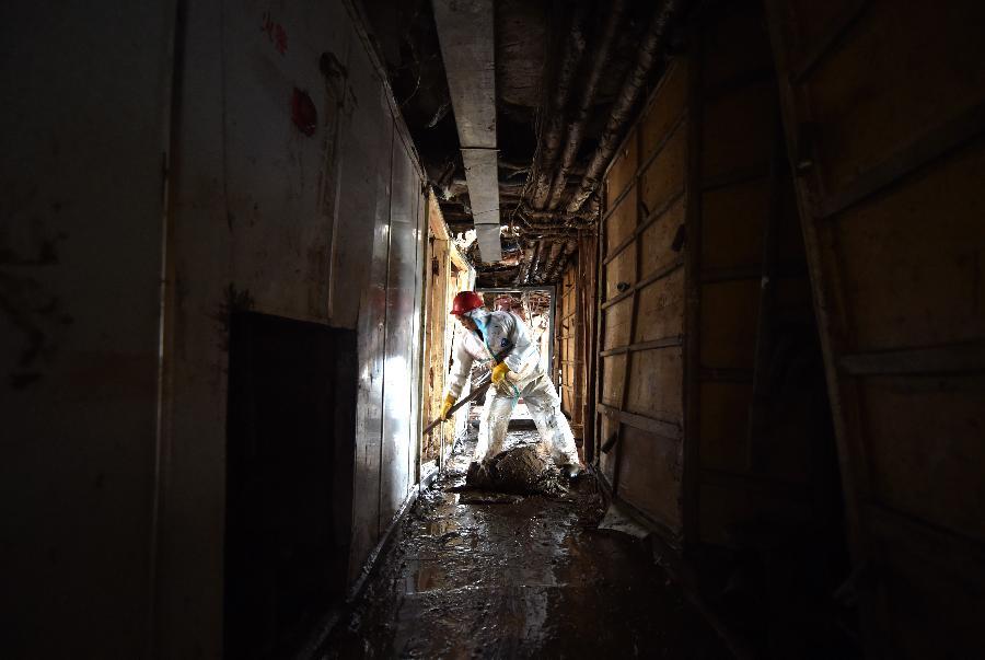 Photo taken on June 8, 2015 shows the personal effects of the victims of the capsized ship Eastern Star in the Jianli section of the Yangtze River, central China's Hubei Province. Over 1,500 pieces of personal effects belonged to the victims and more than 200 tons of sundries have been found so far during a search process. The Eastern Star cruise ship, carrying 456 people onboard, was on an 11-day trip along the Yangtze River when it was overturned by a tornado last Monday night in Jianli. (Photo: Xinhua/Cheng Min)