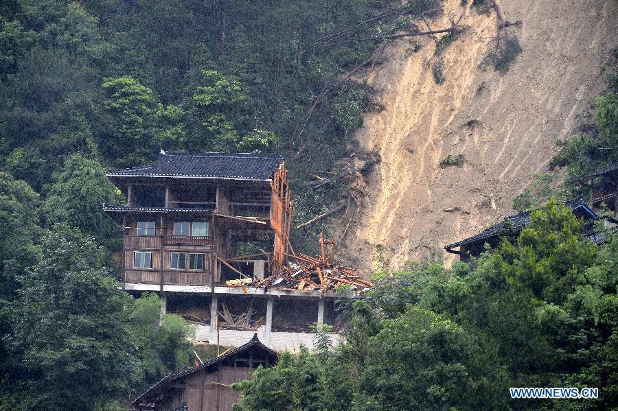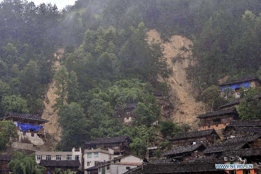 Jidao Village, Kaili City of southwest China's Guizhou Province. A landslide took place in Jidao Village on Monday due to heavy rain. No casualties have been reported. (Photo: Xinhua/Chen Peiliang)
