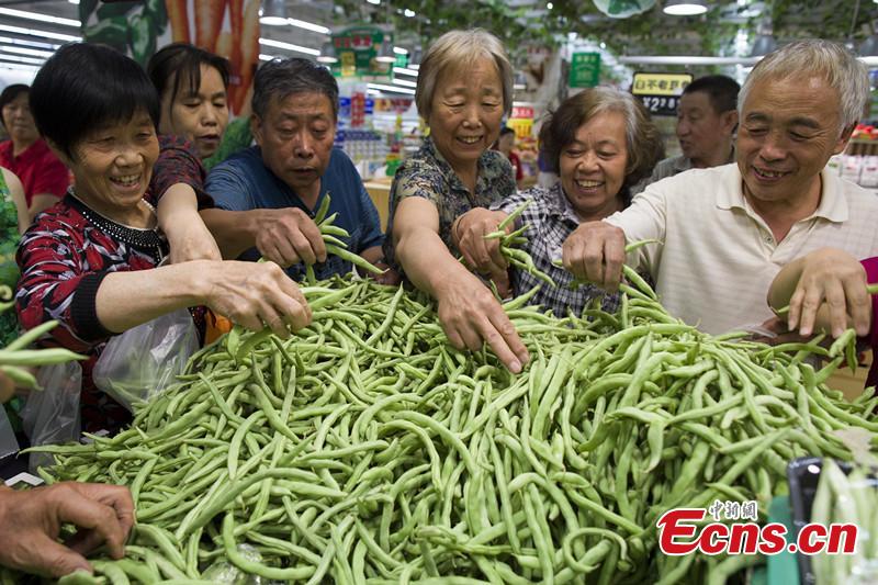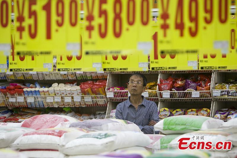 Residents purchase flour at a market in Taiyuan, capital of central China's Shanxi Province, June 9, 2015. China's consumer price index (CPI), a main gauge of inflation, grew 1.2 percent year on year in May, the National Bureau of Statistics announced on Tuesday. (CNS photoe/Zhang Yun)