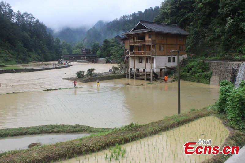 Paddy fields submerged by water in Leishan Village, southwest China's Guizhou Province, June 8, 2015. Heavy rains continued to batter southern regions of China on Monday. (CNS photo/Wen Shou)