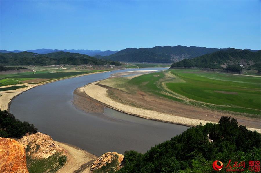 These photos show beautiful scenery on the banks of the Yalu River in early summer. (Photo/people.cn)