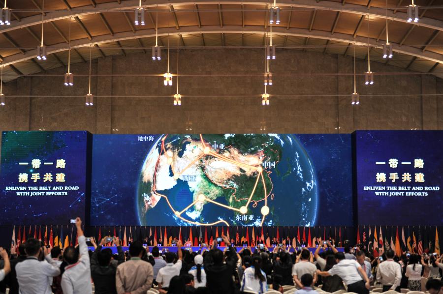 Photo taken on June 12, 2015 shows the opening ceremony of the 3rd China-South Asia Exposition in Kunming, capital of southwest China's Yunnan Province. The 3rd China-South Asia Exposition opened here on Friday. (CNS photo/Ren Dong)