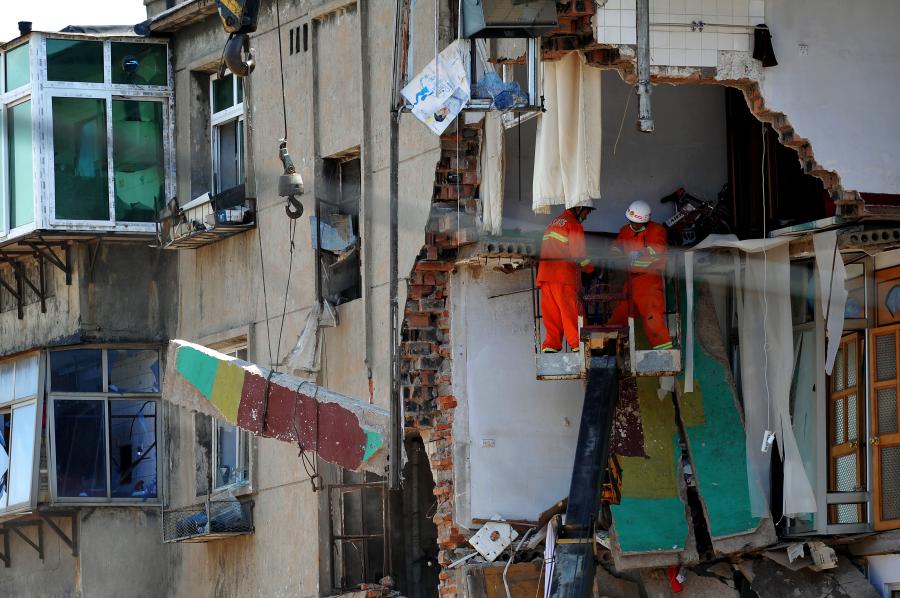 1 dead, 2 missing in residential building explosion in NE China(1/2)