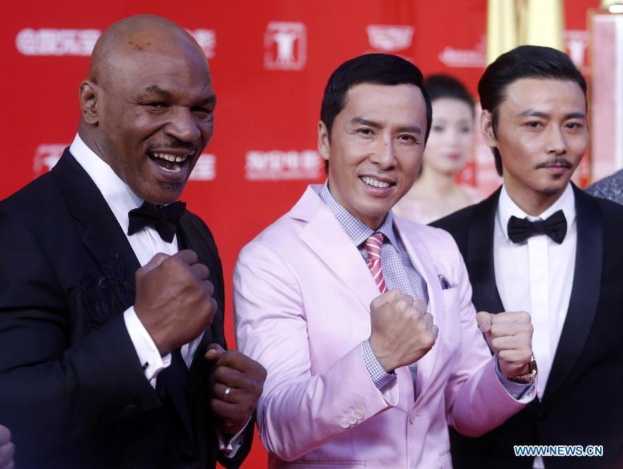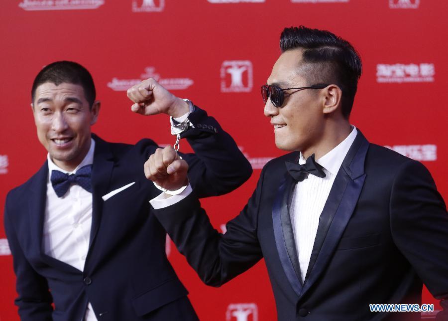 Actress Fan Bingbing (C), actor Chun Wu (L) and Li Ming walk the red carpet at the 18th Shanghai International Film Festival in Shanghai, east China, June 13, 2015. The 9-day festival kicked off on Saturday. (Photo: Xinhua/Ding Ting)