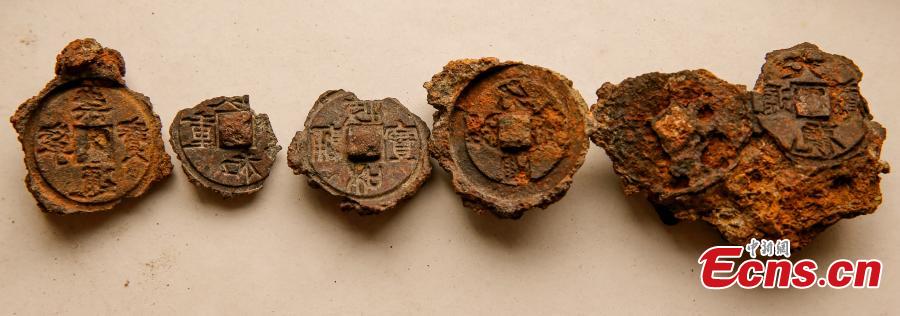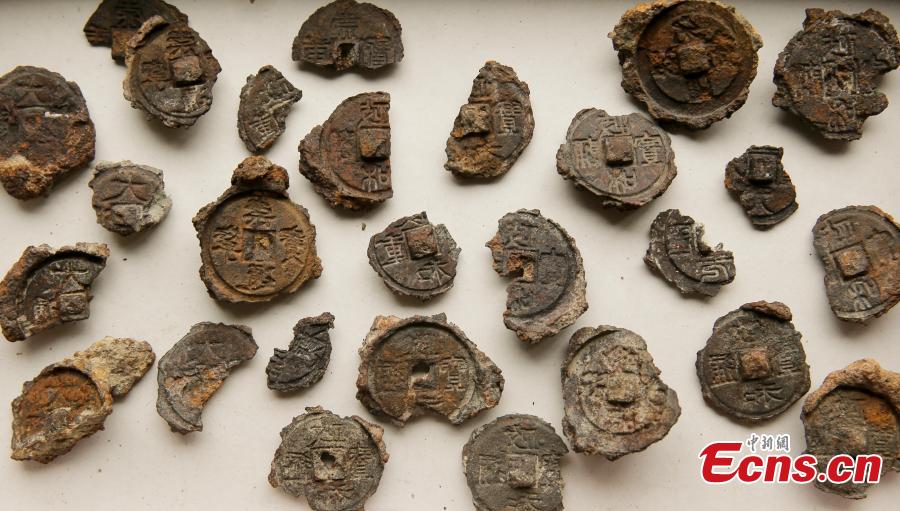 Casting molds used to produce ancient coins in Northern Song Dynasty (960-1127) are seen in Yuncheng city, North China’s Shanxi province. Two enthusiasts of the city's salt lake culture discovered the molds while taking photographs of birds there. Yuncheng’s salt lake, known as "China's Dead Sea,” has a history as a source of salt crystals for over 4,000 years. (Photo/CFP)