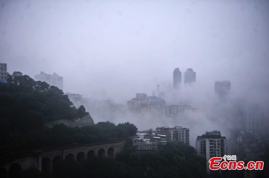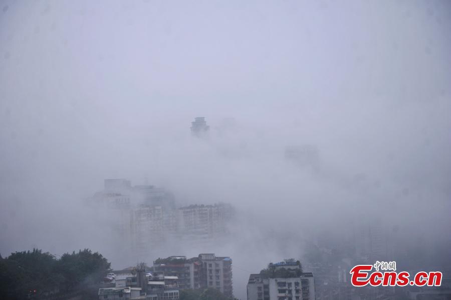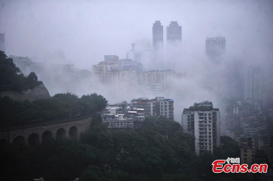 Fog surrounds buildings in Southwest China’s Chongqing municipality, June 16, 2016. Built on mountains and partially enclosed by the Yangtze and Jialing rivers, Chongqing is variously known as a "mountain city," a "city on rivers", and "fog city". (Photo: China News Service/Chen Chao)
