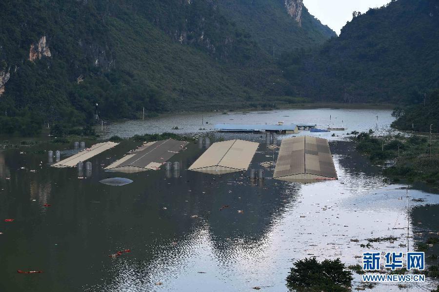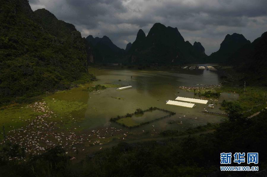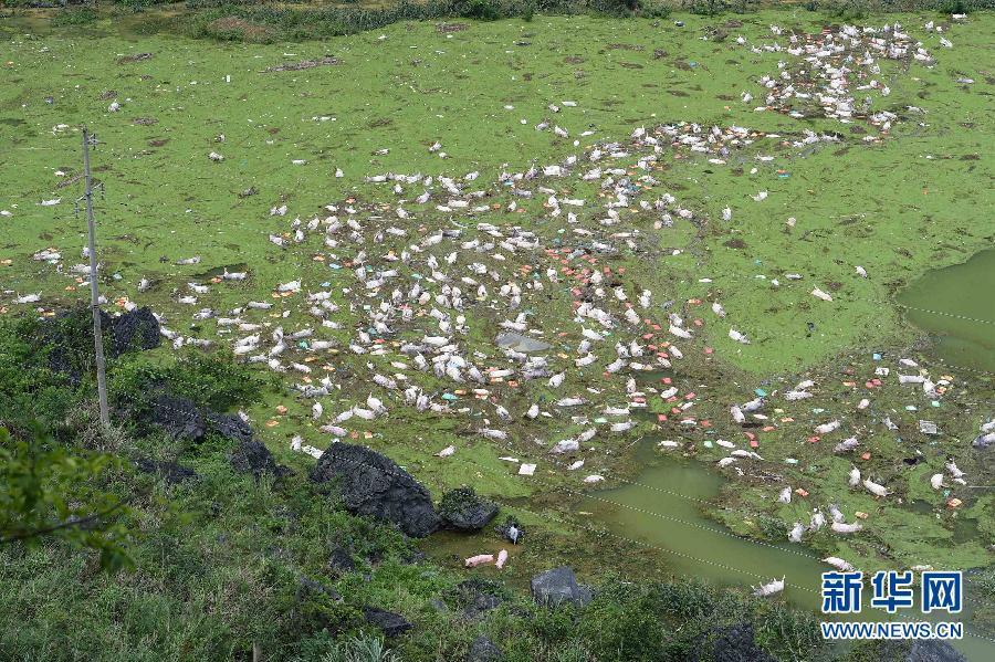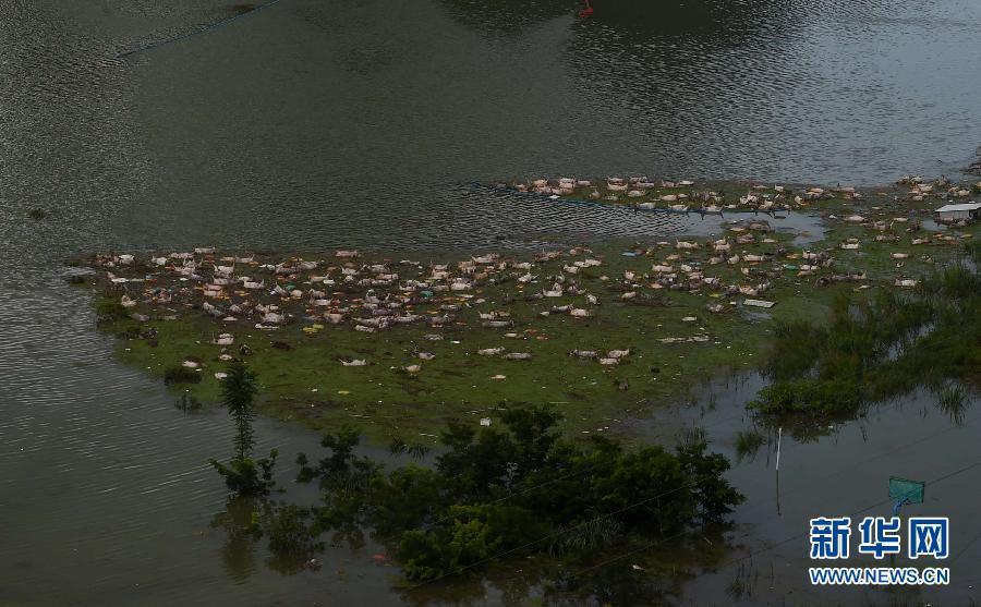 Dead pigs are seen drifting after a farm flooded by heavy rainstorms in Liuye Township in Southwest China's Guangxi Zhuang Autonomous Region on June 16, 2015. (Photo/Xinhua)