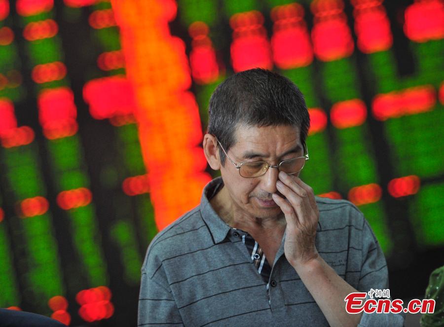 June 19, Taiyuan, a man looks sad in a securities business hall. On this day, SSE composite fall down below 4500 point, the drop range is 6.42%. (CNS photo/ Wei Liang)