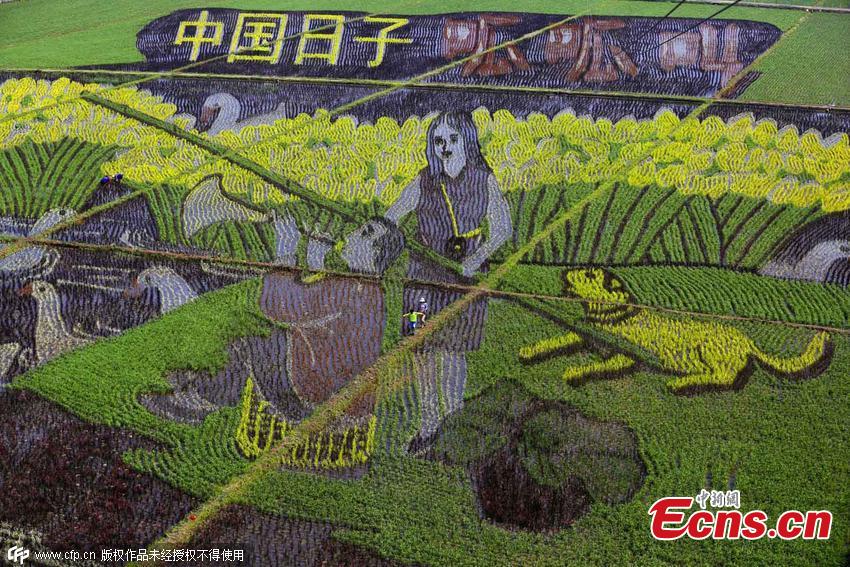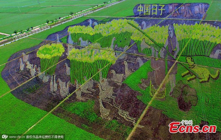Shenyang presents vivid 3D images on paddy field.(1/4)