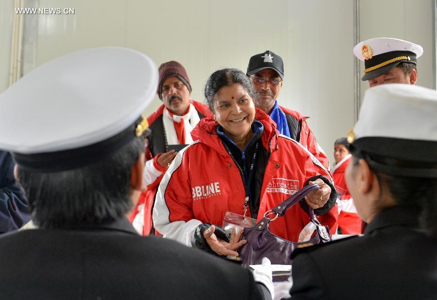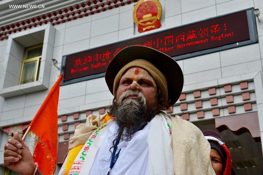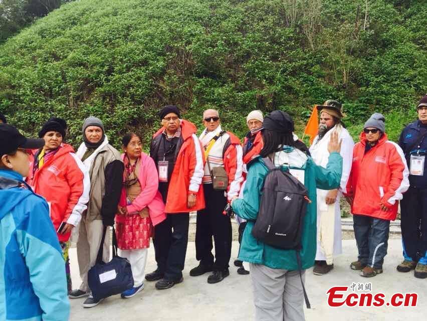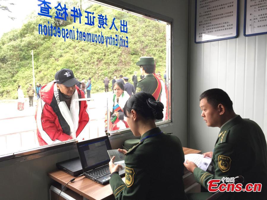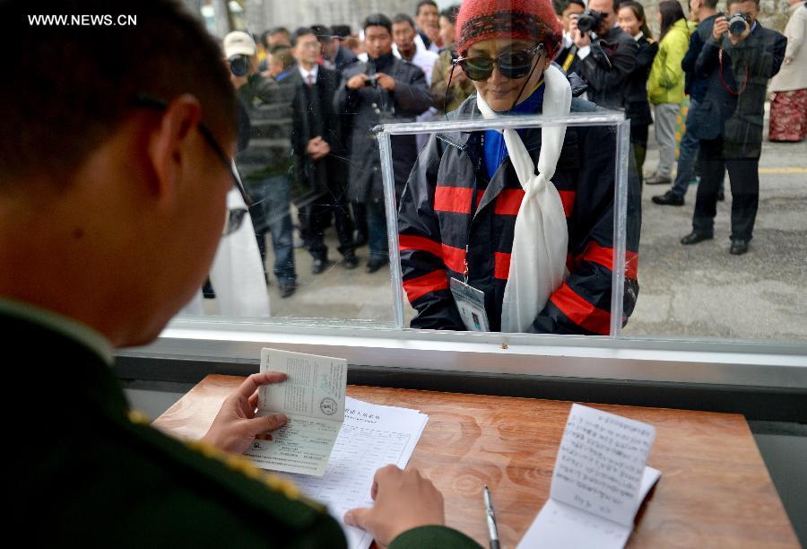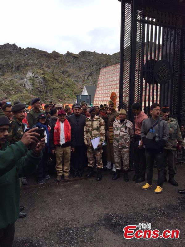 An Indian pilgrim has his passport checked at Nathu La Pass in Southwest China’s Tibet autonomous region, June 22, 2015. China on Monday opened a new route along the Nathu La Pass for pilgrims from India traveling to Tibet, to further promote religious exchanges between the two countries. Hindus regard Tibet's Mount Kailash and Lake Manasarovar as holy religious sites, and pilgrims cross the border to pay homage at both between June and November. Forty-three pilgrims started a 12-day journey using the new path that makes it easier for Indian pilgrims. (Photo: China News Service/Cai Zhijian)
